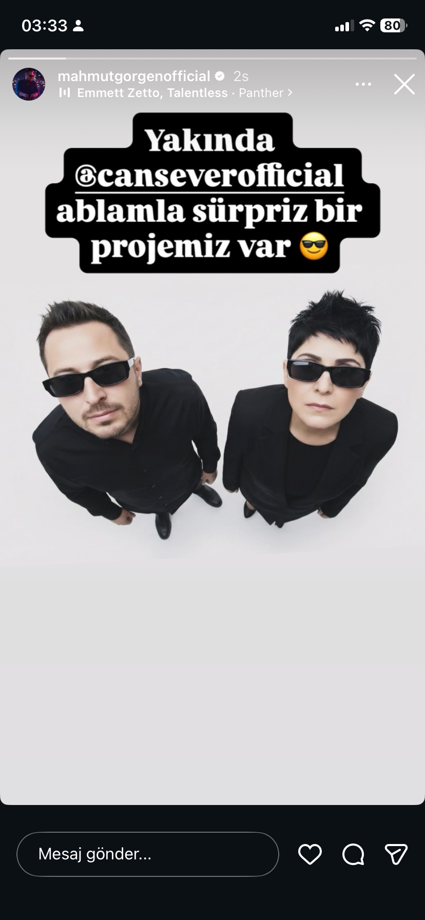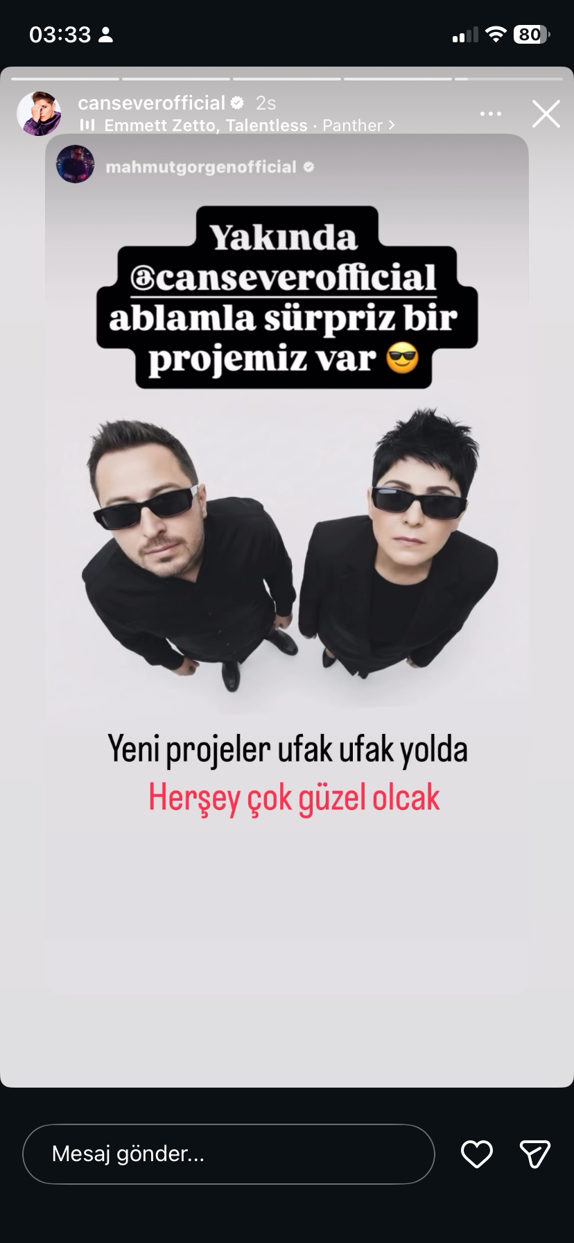 Bu paylaşımın hemen ardından Görgen, arabesk müziğin usta ismi Cansever ile bir fotoğrafını sosyal medya hesabından paylaşarak, “Yakında bir sürprizimiz var” notunu düşmesiyle merakı daha da artırdı. Daha önce Cansever ile üç farklı projede başarılı çalışmalara imza atan Mahmut Görgen’in bu notla yaptığı paylaşım, yeni bir projeye dair beklentileri yükseltti.